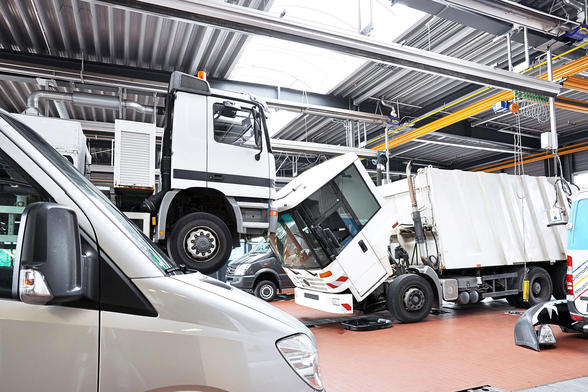 Reparaturen, Pflege und regelmäßige Wartung von LKWs, Transportern und anderen Nutzfahrzeugen.